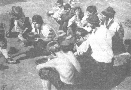 À noite, deveriam permanecer separados por sexo: os homens de um lado e as mulheres, crianças e bebês de outro.