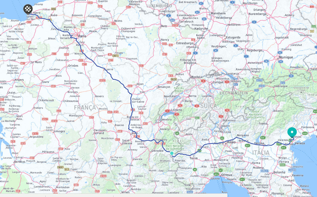 Partiram da região de Pederobba, então com 4.500 habitantes, rumo a Treviso, onde tomariam o Trem que os levaria a Le havre, na França, passando por Vicenza, Milão, Turim, e já entrando na França, Modane, Lion, Paris e finalmente Le Havre.